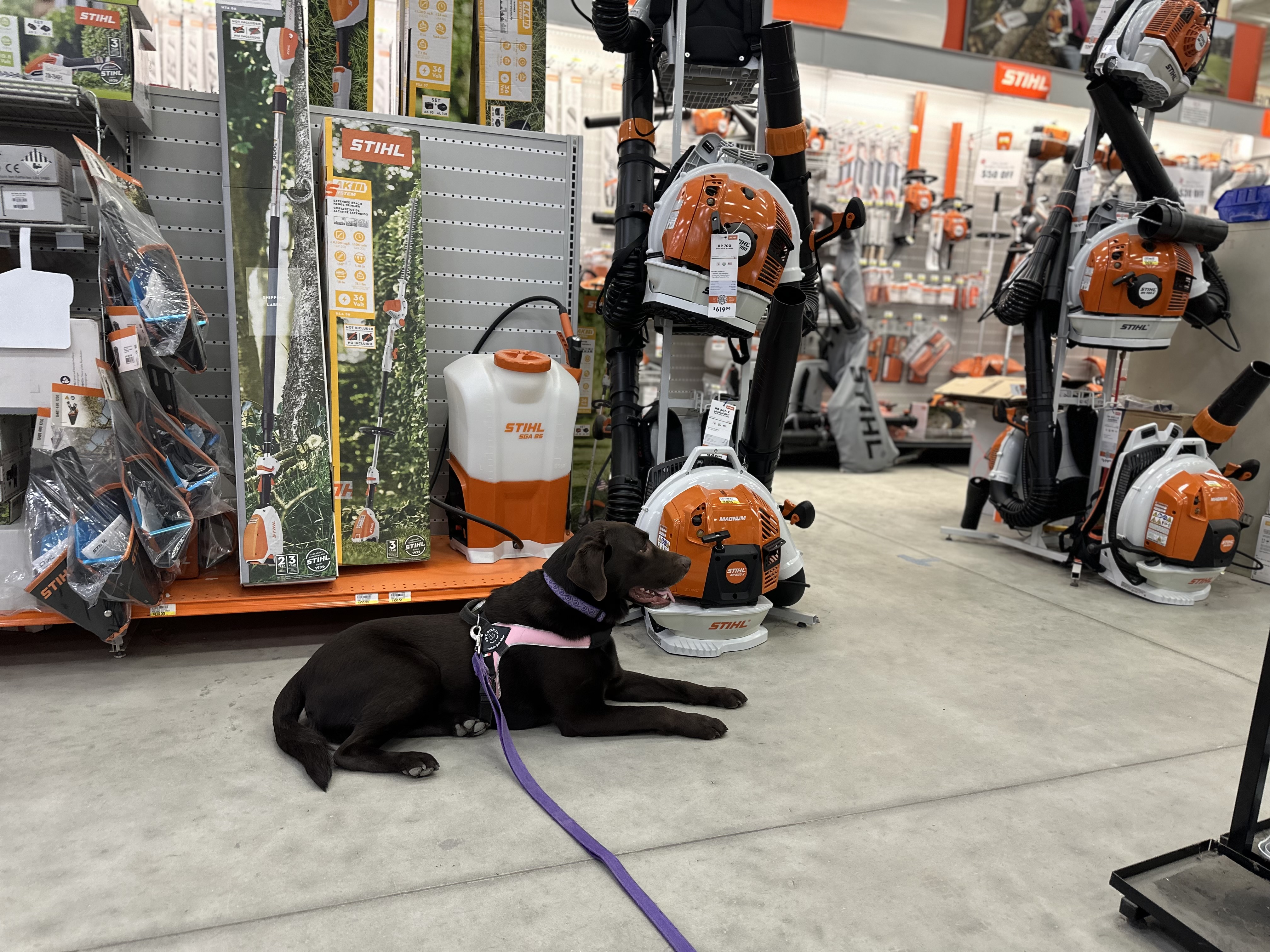 If it was up to me I would park up front and race in quick. Daddy always parks far away and checks the trees first. Today we had to check the whole parking lot for some reason. Then we had to do a lot of ‘check it out’ work on the spring garden supplies. I’m not sure why I had to supervise so much. Sometimes I had to lay down and wait. But all the people were over at the magic doors.